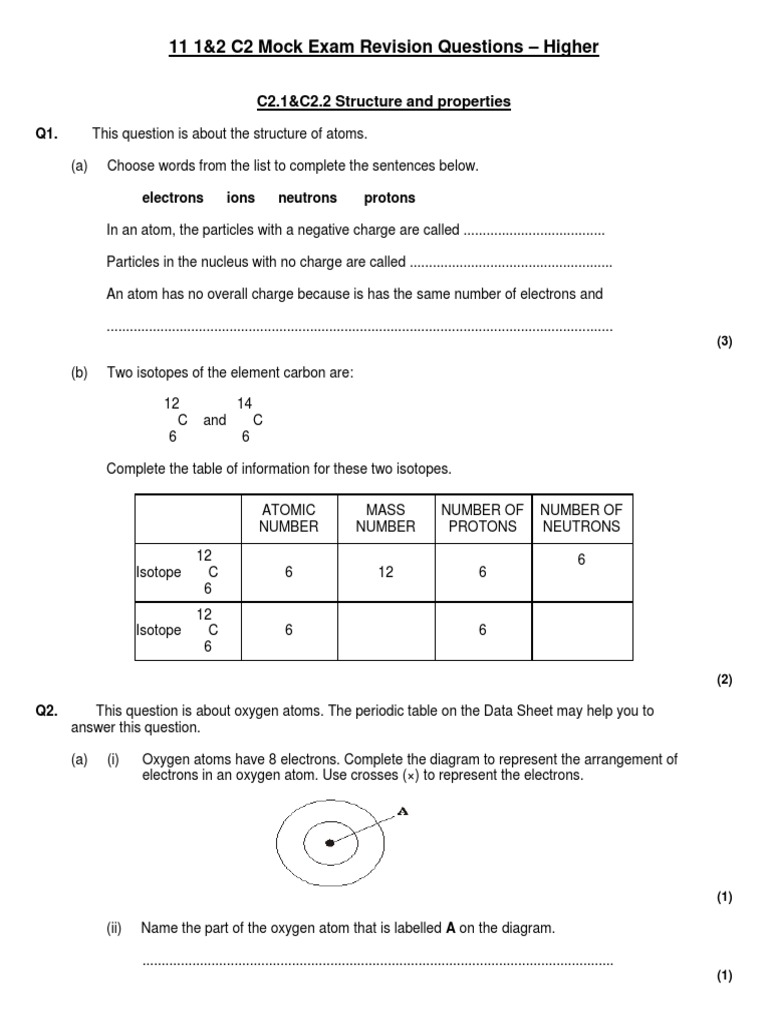 C2 Higher Revision Questions Sets 12 3 Higher Tier Only Pdf Ion Chemical Bond